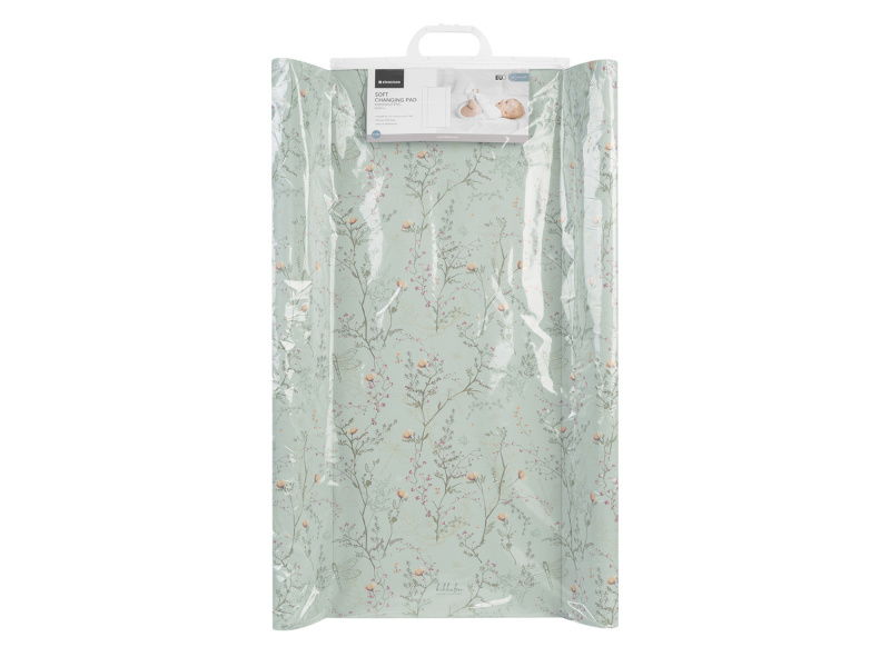 Měkká přebalovací podložka s krásným květinovým potiskem zajistí dítěti pohodlí během přebalování. Vyvýšené boční okraje pomáhají udržet dítě během přebalování bezpečně na přebalovacím pultu. Podložka je určena pro použití na pevném rovném podkladu. Voděodolný povrch snadno očistíte otřením nebo omytím. Rozměry: 70 x 50 x 10 cm Hmotnost: 0,55 kg Složení: potah 100% PVC, výplň 67% polyester, 33% polyuretan Vyrobeno z bezpečných materiálů v souladu s normou EN 71-1. Vhodné pro děti od narození do 12 měsíců (do 11 kg).