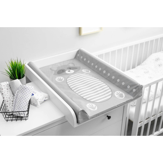 Přebalovací podložka Sensillo s profilovanými okraji z nepromokavého plastového materiálu, vyplněná molitanem, zdobená veselým obrázkem. Rozměr: šxd cca 49x70 cm, vnitřní rozměr: šxd cca 33,5x70 cm. Složení: PVC, výplň: polyuretanová pěna.