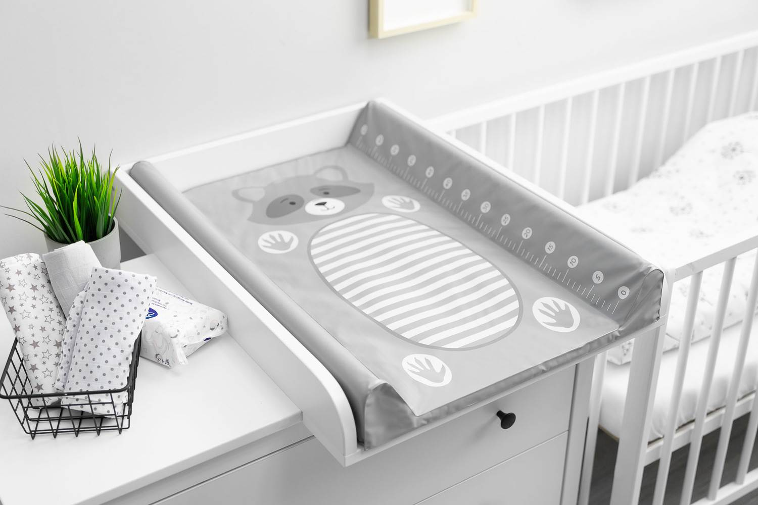 Přebalovací podložka Sensillo s profilovanými okraji z nepromokavého plastového materiálu, vyplněná molitanem, zdobená veselým obrázkem. Rozměr: šxd cca 49x70 cm, vnitřní rozměr: šxd cca 33,5x70 cm. Složení: PVC, výplň: polyuretanová pěna.