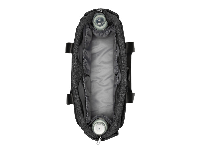 Stylová přebalovací taška umožňuje přehledné uložení všeho potřebného na procházky a výlety s vaším dítětem. Klipy umožňují zavěšení na madla kočárku. Uvnitř tašky najdete přebalovací podložku, množství kapes a přihrádek, voděodolnou kapsu pro uložení vlhkých předmětů a dvě termoizolační kapsy pro láhve. Na vnější straně najdete kapsu na zip i prostor pro uložení láhve. Držadla z měkké umělé kůže umožňují pohodlné nošení v ruce, součástí tašky je i ramenní popruh pro nošení přes rameno. Složení: 100% polyester Rozměry: 44 x 28 x 16 cm