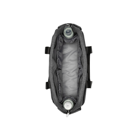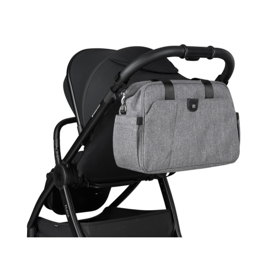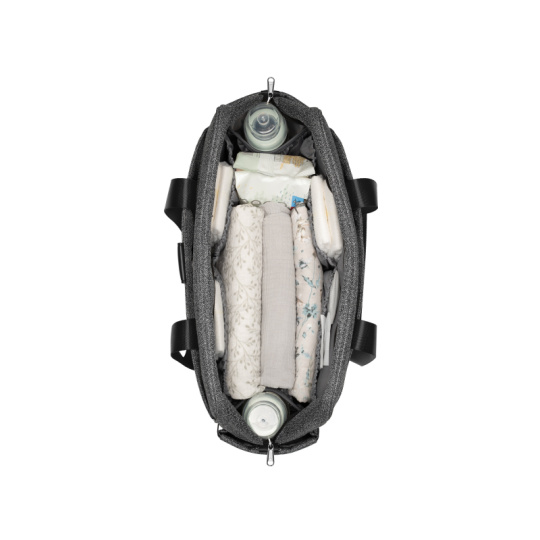 Stylová přebalovací taška umožňuje přehledné uložení všeho potřebného na procházky a výlety s vaším dítětem. Klipy umožňují zavěšení na madla kočárku. Uvnitř tašky najdete přebalovací podložku, množství kapes a přihrádek, voděodolnou kapsu pro uložení vlhkých předmětů a dvě termoizolační kapsy pro láhve. Na vnější straně najdete kapsu na zip i prostor pro uložení láhve. Držadla z měkké umělé kůže umožňují pohodlné nošení v ruce, součástí tašky je i ramenní popruh pro nošení přes rameno. Složení: 100% polyester Rozměry: 44 x 28 x 16 cm