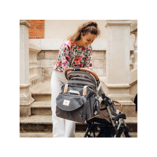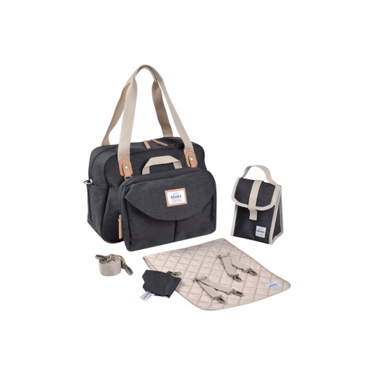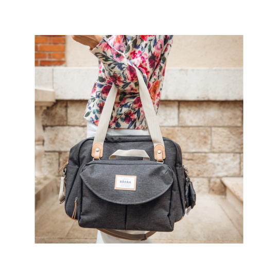 Prostorná přebalovací taška 2v1 Beaba Geneva vám zjednoduší a zpříjemní cestování s miminkem. Oddělitelné pouzdro pro přehledné ukládání peněženky, mobilu, klíčů apod. v přední části nabízí maximální variabilitu při používání tašky. Velký vnitřní prostor je vybaven několika kapsami na uložení potřeb pro dítě. Součástí je i samostatná prostorná termoizolační taška na dětské jídlo a nápoje, přebalovací podložka, závěsné antibakteriální pouzdro na dudlík a dva úchyty na zavěšení na madlo kočárku. Ramenní popruh s polstrováním i držadla pro nošení v ruce umožňují pohodlné přenášení. Na zadní straně tašky je úchyt pro umístění tašky na vysunovací rukojeť kufříku na kolečkách. Taška je vyrobena z pevného voděodolného materiálu. Rozměry: (š x v x h): 44 x 30 x 26 cm