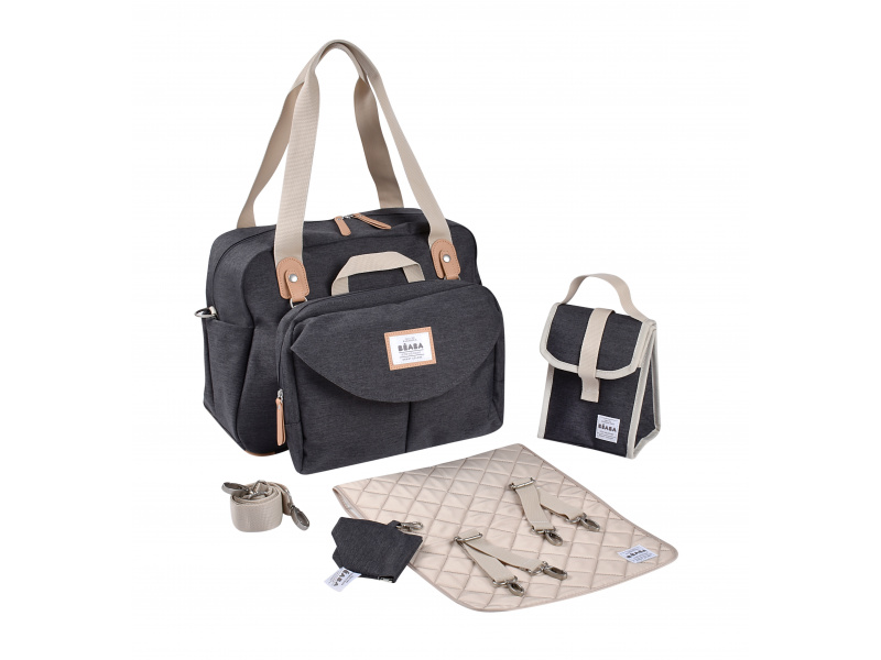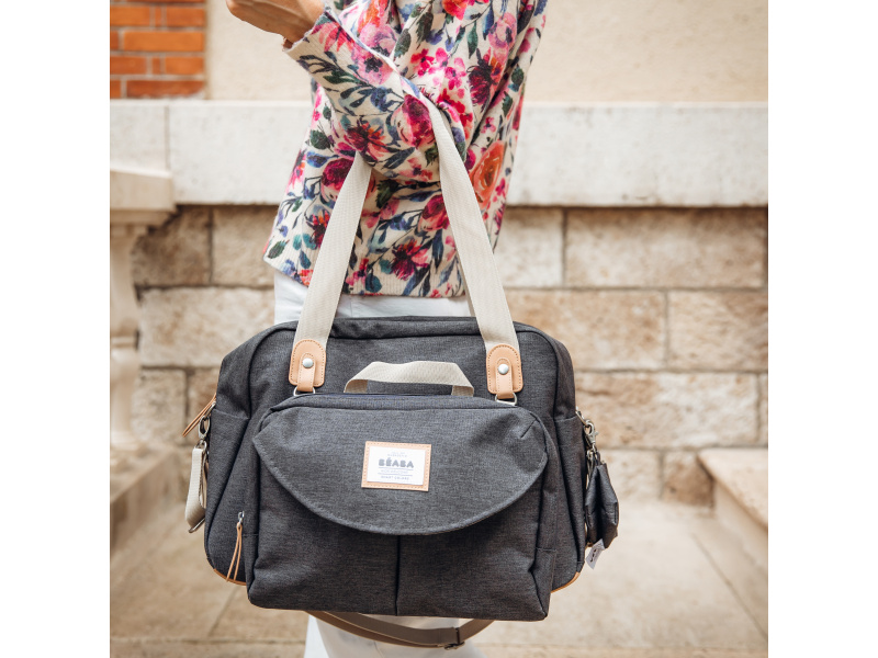 Prostorná přebalovací taška 2v1 Beaba Geneva vám zjednoduší a zpříjemní cestování s miminkem. Oddělitelné pouzdro pro přehledné ukládání peněženky, mobilu, klíčů apod. v přední části nabízí maximální variabilitu při používání tašky. Velký vnitřní prostor je vybaven několika kapsami na uložení potřeb pro dítě. Součástí je i samostatná prostorná termoizolační taška na dětské jídlo a nápoje, přebalovací podložka, závěsné antibakteriální pouzdro na dudlík a dva úchyty na zavěšení na madlo kočárku. Ramenní popruh s polstrováním i držadla pro nošení v ruce umožňují pohodlné přenášení. Na zadní straně tašky je úchyt pro umístění tašky na vysunovací rukojeť kufříku na kolečkách. Taška je vyrobena z pevného voděodolného materiálu. Rozměry: (š x v x h): 44 x 30 x 26 cm