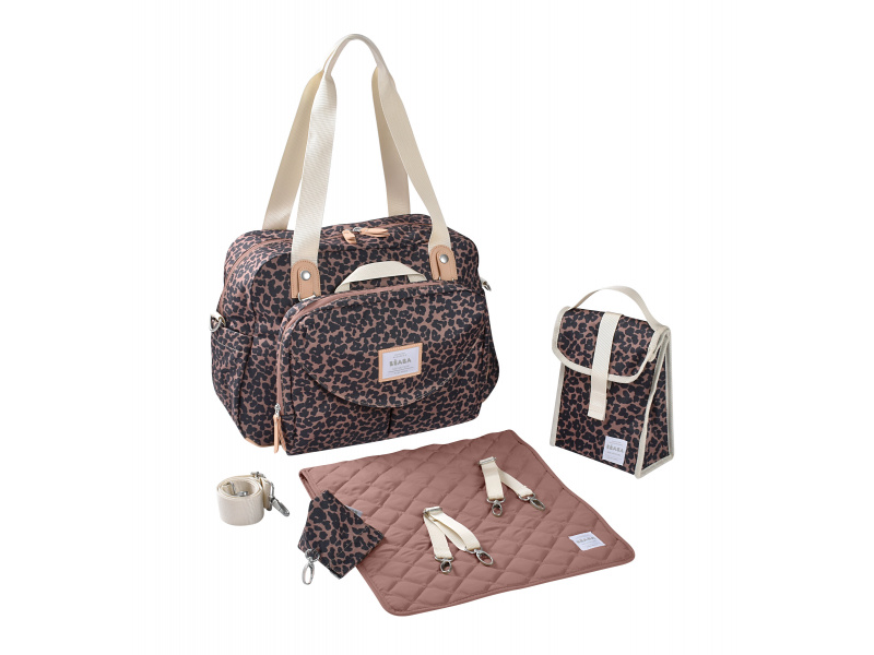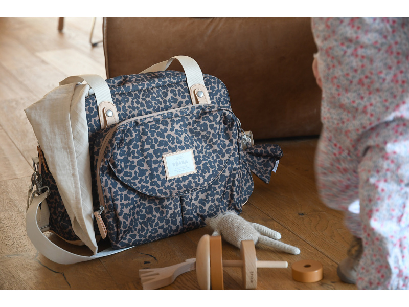 Prostorná přebalovací taška 2v1 Beaba Geneva vám zjednoduší a zpříjemní cestování s miminkem. Oddělitelné pouzdro pro přehledné ukládání peněženky, mobilu, klíčů apod. v přední části nabízí maximální variabilitu při používání tašky. Velký vnitřní prostor je vybaven několika kapsami na uložení potřeb pro dítě. Součástí je i samostatná prostorná termoizolační taška na dětské jídlo a nápoje, přebalovací podložka, závěsné antibakteriální pouzdro na dudlík a dva úchyty na zavěšení na madlo kočárku. Ramenní popruh s polstrováním i držadla pro nošení v ruce umožňují pohodlné přenášení. Na zadní straně tašky je úchyt pro umístění tašky na vysunovací rukojeť kufříku na kolečkách. Taška je vyrobena z pevného voděodolného materiálu. Rozměry: (š x v x h): 44 x 30 x 26 cm