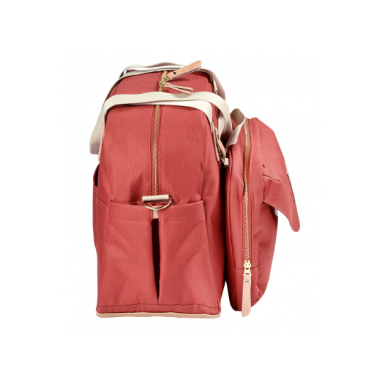 Prostorná přebalovací taška 2v1 Beaba Geneva vám zjednoduší a zpříjemní cestování s miminkem. Oddělitelné pouzdro pro přehledné ukládání peněženky, mobilu, klíčů apod. v přední části nabízí maximální variabilitu při používání tašky. Velký vnitřní prostor je vybaven několika kapsami na uložení potřeb pro dítě. Součástí je i samostatná prostorná termoizolační taška na dětské jídlo a nápoje, přebalovací podložka, závěsné antibakteriální pouzdro na dudlík a dva úchyty na zavěšení na madlo kočárku. Ramenní popruh s polstrováním i držadla pro nošení v ruce umožňují pohodlné přenášení. Na zadní straně tašky je úchyt pro umístění tašky na vysunovací rukojeť kufříku na kolečkách. Taška je vyrobena z pevného voděodolného materiálu. Rozměry: (š x v x h): 44 x 30 x 26 cm