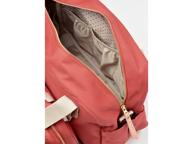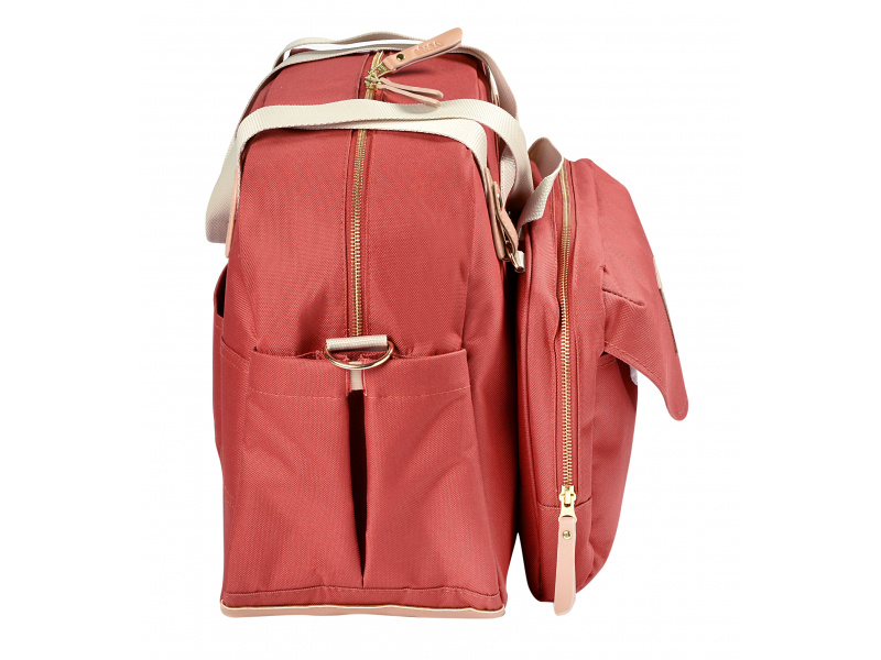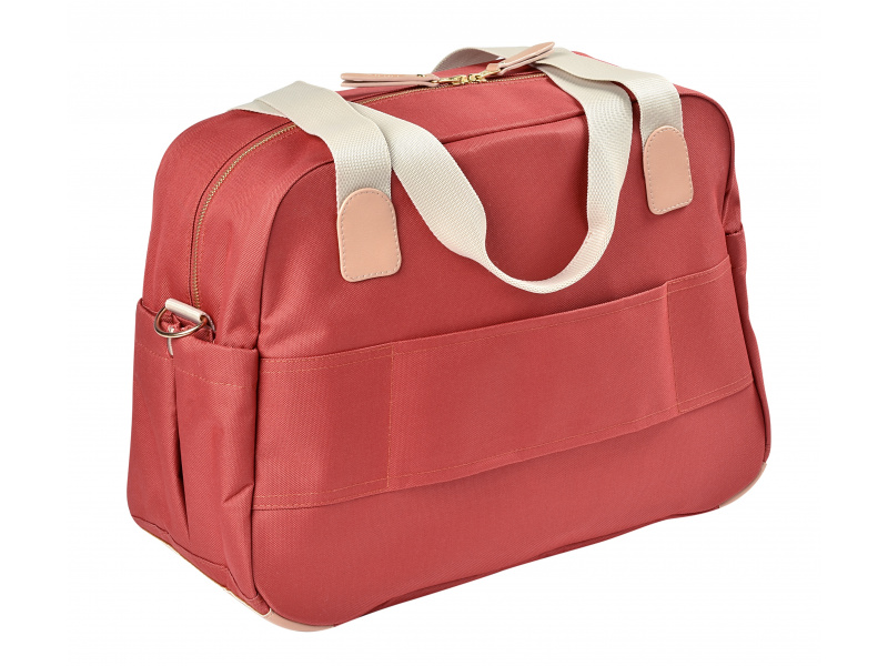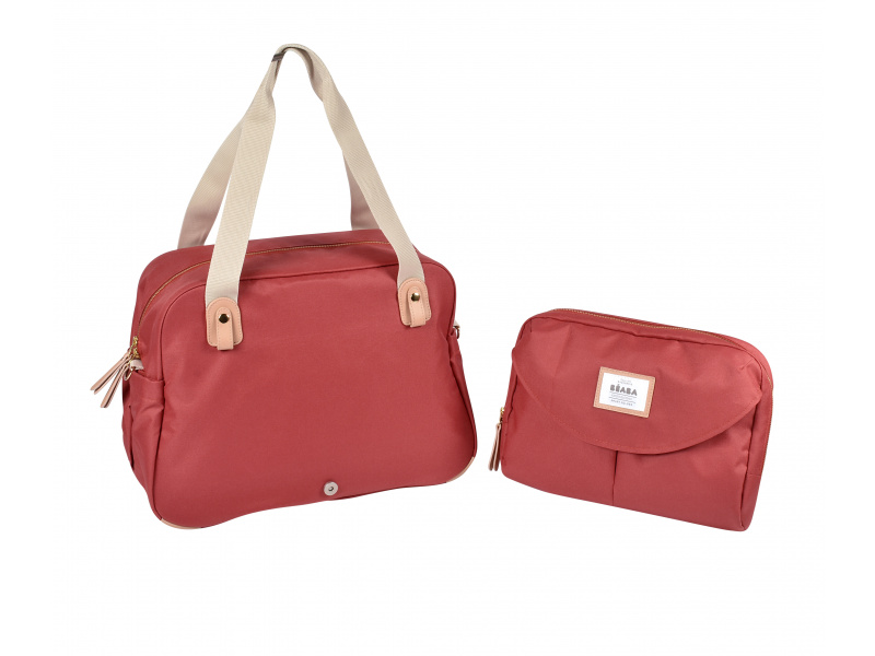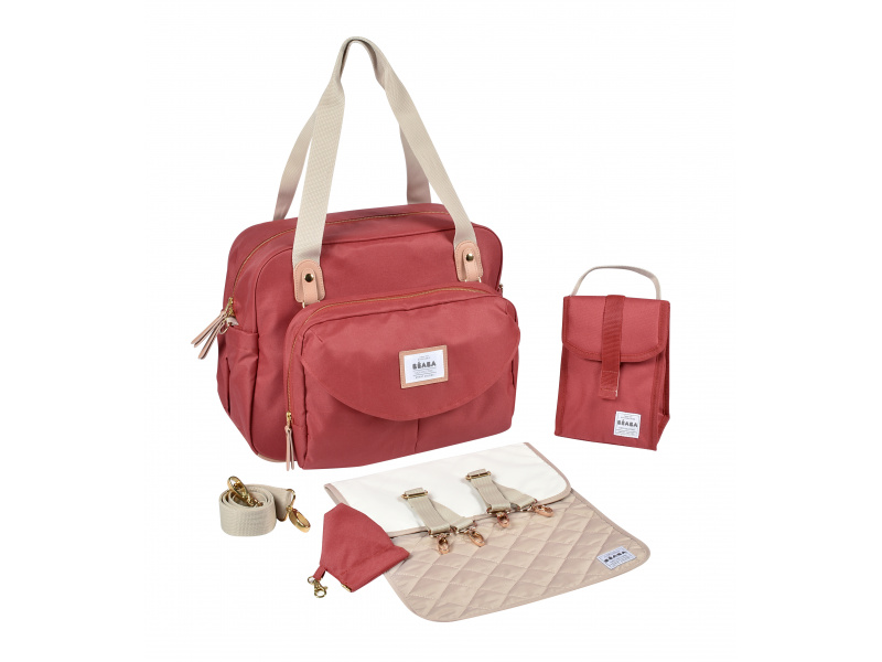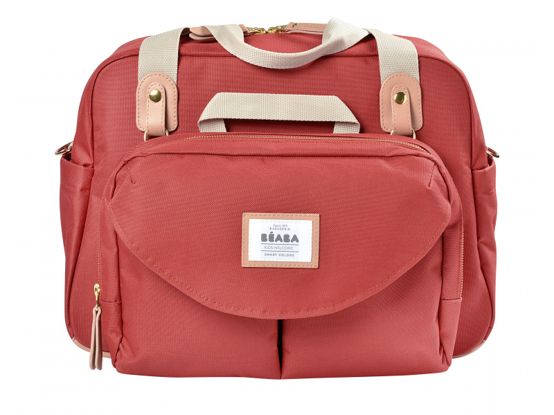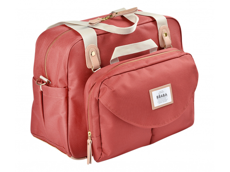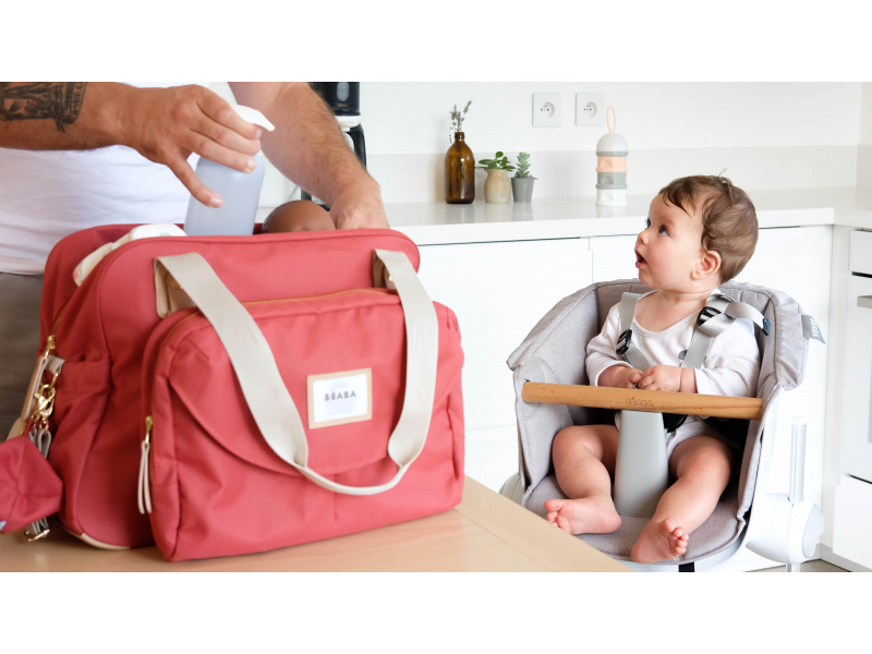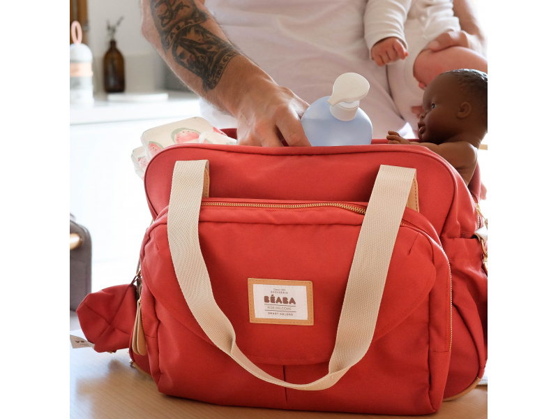 Prostorná přebalovací taška 2v1 Beaba Geneva vám zjednoduší a zpříjemní cestování s miminkem. Oddělitelné pouzdro pro přehledné ukládání peněženky, mobilu, klíčů apod. v přední části nabízí maximální variabilitu při používání tašky. Velký vnitřní prostor je vybaven několika kapsami na uložení potřeb pro dítě. Součástí je i samostatná prostorná termoizolační taška na dětské jídlo a nápoje, přebalovací podložka, závěsné antibakteriální pouzdro na dudlík a dva úchyty na zavěšení na madlo kočárku. Ramenní popruh s polstrováním i držadla pro nošení v ruce umožňují pohodlné přenášení. Na zadní straně tašky je úchyt pro umístění tašky na vysunovací rukojeť kufříku na kolečkách. Taška je vyrobena z pevného voděodolného materiálu. Rozměry: (š x v x h): 44 x 30 x 26 cm