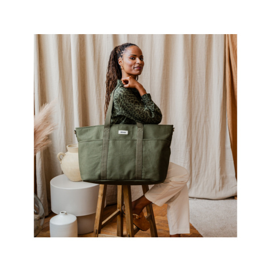 Extra velká elegantní přebalovací taška spojuje nadčasový design, promyšlenou funkčnost a velkorysý objem 44 litrů. Je ideální pro rodiče, kteří chtějí mít vše potřebné přehledně uspořádané a zároveň si přejí tašku, která vypadá skvěle při běžném nošení i na kočárku. Nadčasový design – stylová volba pro každý den Prostorný objem 44 litrů – dost místa na všechno potřebné Integrovaný systém uchycení na kočárek – pohodlné a rychlé použití 11 chytrých kapes – praktické uspořádání všech drobností Vestavěná termoizolační kapsa – udržuje nápoje či jídlo v ideální teplotě Polstrovaná přebalovací podložka – pro snadné přebalení na cestách Vodoodpudivý materiál – snadná údržba otřením Materiály bez PFAS – bezpečnější a šetrnější k životnímu prostředí Složení: 65% bavlna, 35% polyester, podšívka 100% polyester Rozměry: 57 x 38 x 20 cm Objem: 44 litrů