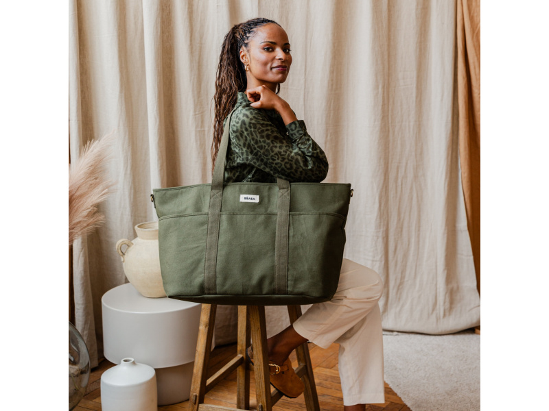 Extra velká elegantní přebalovací taška spojuje nadčasový design, promyšlenou funkčnost a velkorysý objem 44 litrů. Je ideální pro rodiče, kteří chtějí mít vše potřebné přehledně uspořádané a zároveň si přejí tašku, která vypadá skvěle při běžném nošení i na kočárku. Nadčasový design – stylová volba pro každý den Prostorný objem 44 litrů – dost místa na všechno potřebné Integrovaný systém uchycení na kočárek – pohodlné a rychlé použití 11 chytrých kapes – praktické uspořádání všech drobností Vestavěná termoizolační kapsa – udržuje nápoje či jídlo v ideální teplotě Polstrovaná přebalovací podložka – pro snadné přebalení na cestách Vodoodpudivý materiál – snadná údržba otřením Materiály bez PFAS – bezpečnější a šetrnější k životnímu prostředí Složení: 65% bavlna, 35% polyester, podšívka 100% polyester Rozměry: 57 x 38 x 20 cm Objem: 44 litrů