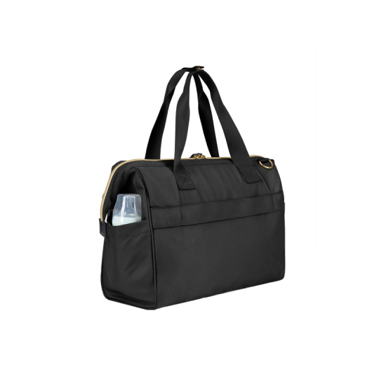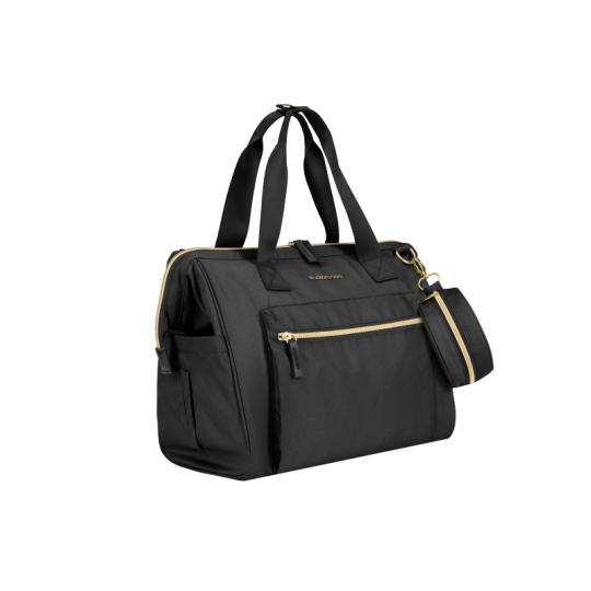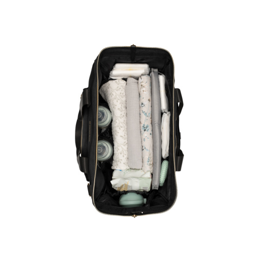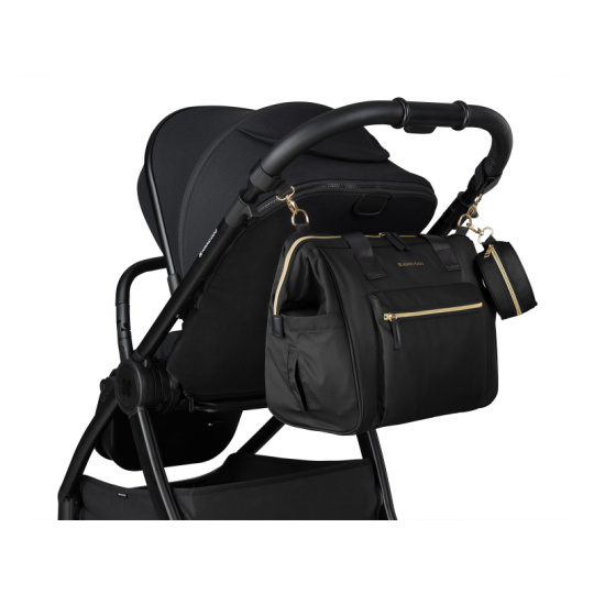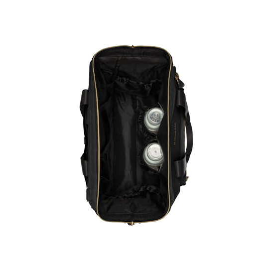 Praktická a stylová přebalovací taška umožňuje přehledné uložení všeho potřebného na procházky a výlety s vaším dítětem. Klipy umožňují zavěšení na madla kočárku. Uvnitř tašky najdete množství kapes a přihrádek, voděodolnou kapsu pro uložení vlhkých předmětů a dvě termoizolační kapsy pro láhve. Široký způsob otevírání tašky usnadňuje orientaci v uloženém obsahu. Na vnější straně najdete kapsy s uzavíráním na zip i kapsu pro uložení láhve. Součástí tašky je i odnímatelné pouzdro na drobnosti a přebalovací podložka. Držadla umožňují pohodlné nošení v ruce, součástí tašky je i ramenní popruh pro nošení přes rameno. Úchyty na zadní straně umožňují připevnění k rukojeti kufru. Složení: 100% polyester Rozměry: 40 x 27 x 22 cm