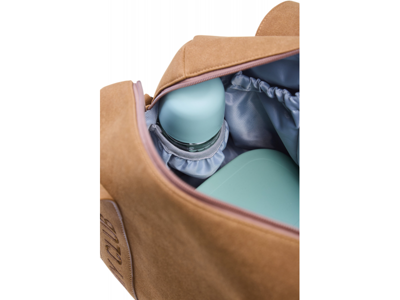 Stylová přebalovací taška Childhome Mommy Club je perfektní pro snadné a přehledné uložení všeho potřebného na procházky a výlety s miminkem. Vnitřní uspořádání nabízí termoizolační kapsu na láhev a elastické kapsy na uložení vlhčených ubrousků, plen, náhradního oblečení apod. Součástí je i přebalovací podložka. Přebalovací taška s uzavíráním na zip je vybavena držadly pro nošení v ruce, popruhem pro nošení přes rameno i úchyty pro zavěšení na kočárek. Taška je vyrobena z příjemné umělé kůže semišového vzhledu s podšívkou. Díky kvalitnímu materiálu ji stačí při znečištění otřít vlhkým hadříkem. Složení: 100% PU kůže Rozměry: 38 x 27 x 21 cm Objem: 22 l Nosnost: 2 kg