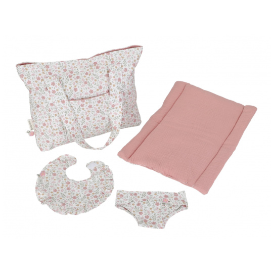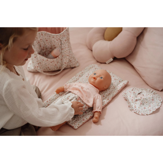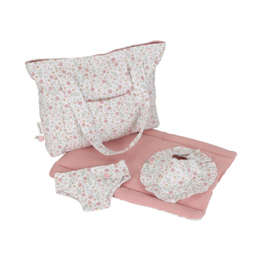 Stylová přebalovací taška Little Dutch je ideálním doplňkem při hraní s panenkami i plyšáky. Díky svému praktickému provedení nabídne dětem vše potřebné k péči o jejich oblíbenou panenku nebo plyšového kamaráda. Uvnitř tašky se nachází měkká látková plenka, pohodlná přebalovací podložka a roztomilý bryndáček. Lehká taška je uzpůsobena pro malé dětské ruce, takže ji děti snadno přenesou kamkoli. Kompletní sada pro péči o panenky (plenka, podložka, bryndáček) Lehká a snadno přenosná taška ideální na cesty i do školky Podporuje hru na role a rozvoj fantazie Stylový květinový design krásně ladí s dalšími doplňky pro panenky z kolekce Little Dutch Soft Flowers. Rozměry: 32 × 28 × 3 cm Vhodné pro děti od 3 let.