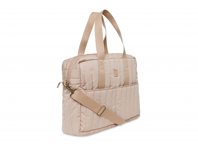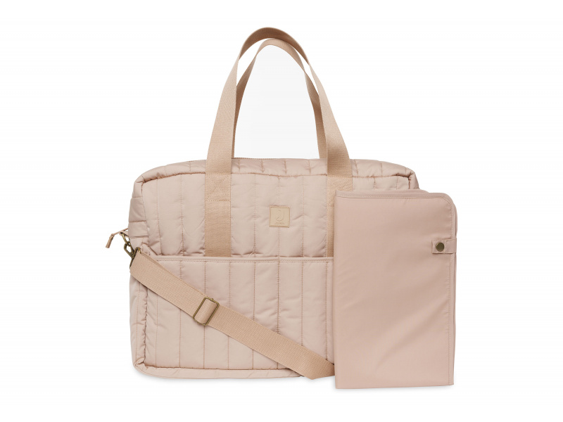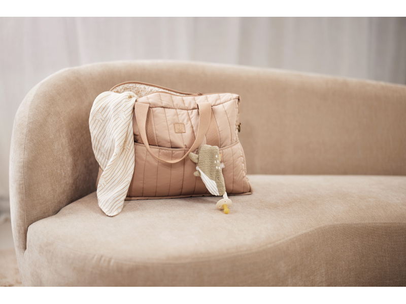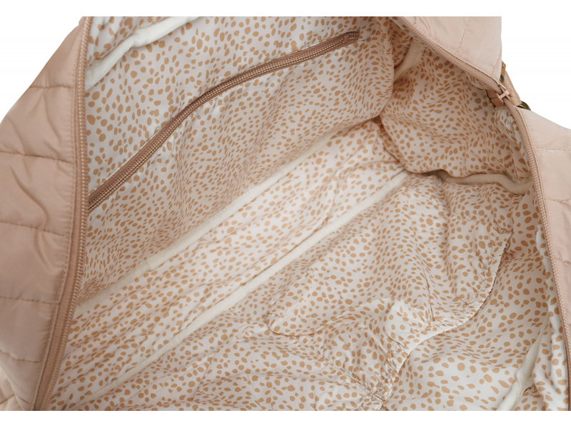 Přebalovací taška z příjemného prošívaného materiálu s výplní a s originální puntíkovanou podšívkou nabízí množství vnitřních i vnějších kapes pro přehledné uspořádání všeho potřebného na procházkách a výletech s vaším dítětem. Součástí tašky je i praktická přebalovací podložka. Ramenní popruh i držadla umožňují nošení přes rameno, v ruce i zavěšení na rukojeť kočárku. Taška se uzavírá na zip. Složení: 100% polyester Rozměry: 42 x 30 x 13 cm