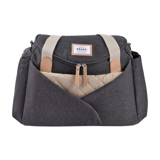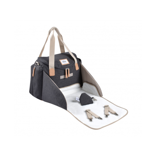 Praktická, atraktivní a chytrá přebalovací taška Beaba Sydney vám zpříjemní každodenní život a cestování s miminkem. Přední kapsa skrývá skládací přebalovací podložku s se spodní voděodolnou tkaninou. Uvnitř i vně tašky je mnoho odkládacích kapes pro přehledné a oddělené ukládání všech nezbytností pro dítě i pro rodiče. Součástí je termoizolační kapsa na láhev, závěsné antibakteriální pouzdro na dudlík a dva úchyty na zavěšení na madlo kočárku. Na zadní straně tašky je úchyt pro umístění tašky na vysunovací rukojeť kufříku na kolečkách. Dlouhá držadla umožňují snadné nošení v ruce i přes rameno. Taška je vyrobena z pevného voděodolného materiálu. Rozměry (š x v x h): 41,5 x 27 x 17 cm