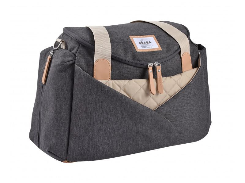 Praktická, atraktivní a chytrá přebalovací taška Beaba Sydney vám zpříjemní každodenní život a cestování s miminkem. Přední kapsa skrývá skládací přebalovací podložku s se spodní voděodolnou tkaninou. Uvnitř i vně tašky je mnoho odkládacích kapes pro přehledné a oddělené ukládání všech nezbytností pro dítě i pro rodiče. Součástí je termoizolační kapsa na láhev, závěsné antibakteriální pouzdro na dudlík a dva úchyty na zavěšení na madlo kočárku. Na zadní straně tašky je úchyt pro umístění tašky na vysunovací rukojeť kufříku na kolečkách. Dlouhá držadla umožňují snadné nošení v ruce i přes rameno. Taška je vyrobena z pevného voděodolného materiálu. Rozměry (š x v x h): 41,5 x 27 x 17 cm