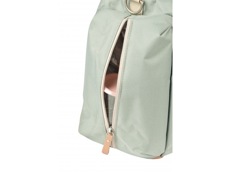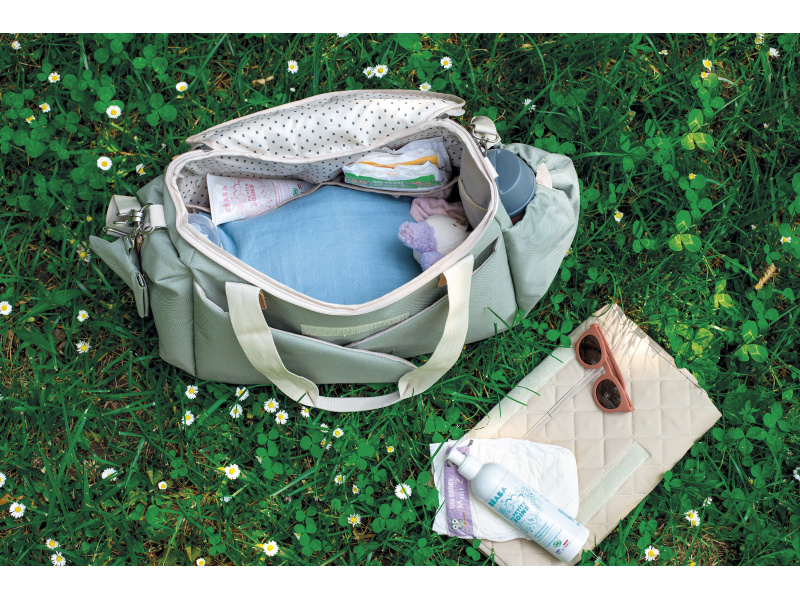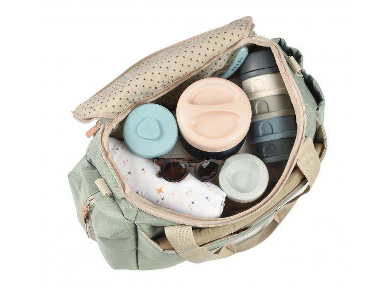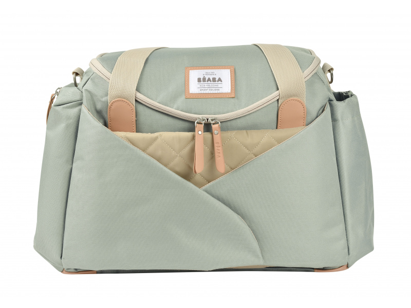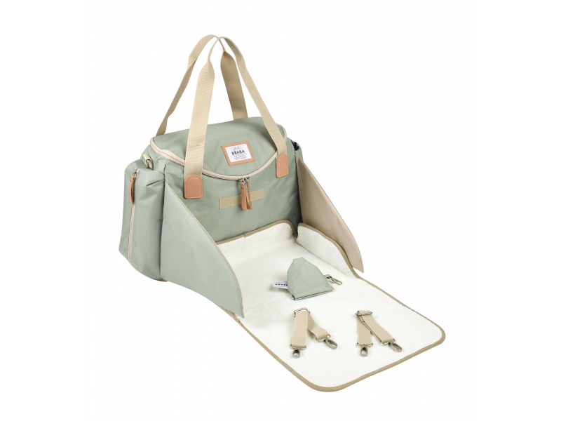 Praktická, atraktivní a chytrá přebalovací taška Beaba Sydney vám zpříjemní každodenní život a cestování s miminkem. Přední kapsa skrývá skládací přebalovací podložku s se spodní voděodolnou tkaninou. Uvnitř i vně tašky je mnoho odkládacích kapes pro přehledné a oddělené ukládání všech nezbytností pro dítě i pro rodiče. Součástí je termoizolační kapsa na láhev, závěsné antibakteriální pouzdro na dudlík a dva úchyty na zavěšení na madlo kočárku. Na zadní straně tašky je úchyt pro umístění tašky na vysunovací rukojeť kufříku na kolečkách. Dlouhá držadla umožňují snadné nošení v ruce i přes rameno. Taška je vyrobena z pevného voděodolného materiálu. Rozměry (š x v x h): 41,5 x 27 x 17 cm