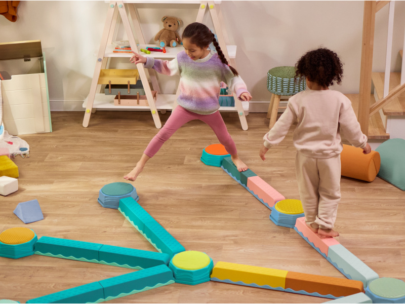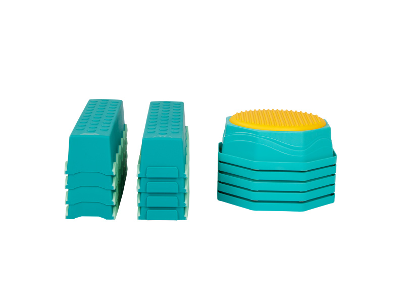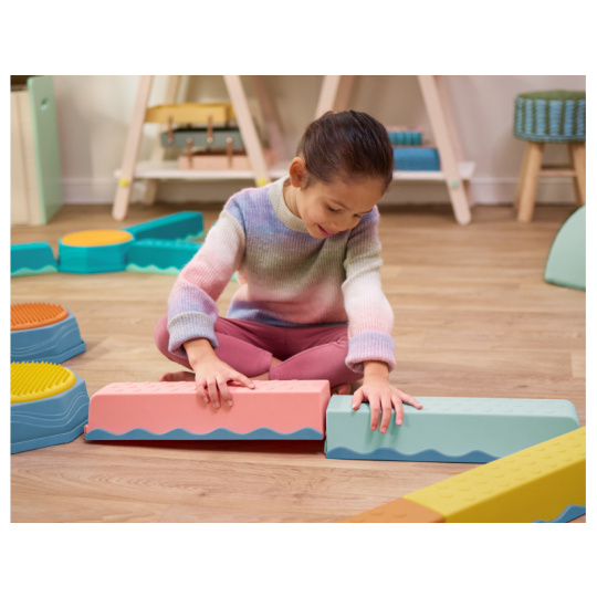 Variabilní překážková dráha poskytne vašim dětem zábavu a zároveň pomáhá rozvíjet jejich rovnováhu, koordinaci a hrubou motoriku. Sada obsahující 8 rovných překážek a 5 kulatých stupínků nabízí mnoho kombinací a způsobů použití, takže pokaždé můžete vymyslet novou, zajímavou variantu. Každý kulatý stupínek navíc nabízí jinou texturu na horní barevné straně. Jednotlivé díly se velmi snadno spojují. Vhodné pro děti od 3 let.