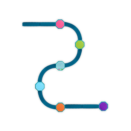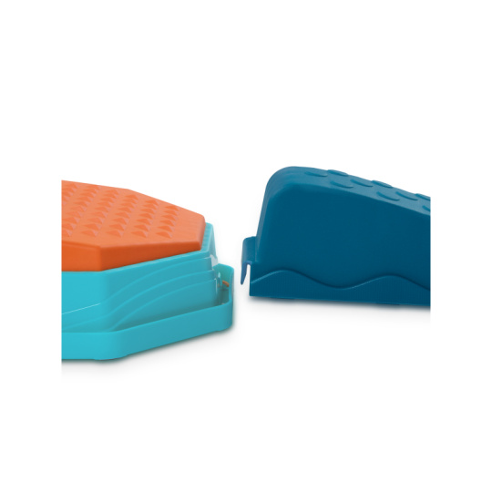 Variabilní překážková dráha Balance & Groove poskytne vašim dětem zábavu a zároveň pomáhá rozvíjet jejich rovnováhu, koordinaci a hrubou motoriku. Součástí sady je speciální hudební stupínek s LED světelnými efekty, který dodává celé dráze magický efekt a motivuje děti zkoušet další a další herní varianty. Sada nabízí mnoho kombinací a způsobů použití, takže pokaždé můžete vymyslet novou, zajímavou variantu. Každý kulatý stupínek navíc nabízí jinou texturu na horní barevné straně. Modulární balanční dráha – 4 vlnité překážky, 4 rovné překážky a 5 senzorických stupínků umožňují nekonečné kombinace a variabilní stavby Hudební stupínek s LED světelnými efekty – speciální díl, který hraje a svítí a nabízí tři zábavné hry Podpora motorického rozvoje – chůze po dráze posiluje rovnováhu, koordinaci a jistotu pohybu Senzorické zážitky – různé povrchy stupínků podporují hmatové vnímání a rozvoj smyslů Jednotlivé díly se velmi snadno spojují Pro samostatnou i skupinovou hru – ideální pro děti, které si chtějí hrát samy, i pro společné aktivity s kamarády nebo sourozenci Jednoduché skladování – všechny díly lze snadno stohovat a kompaktně uložit Vhodné pro vnitřní i venkovní hraní Sadu je možné kombinovat se samostatně prodávanou překážkovou dráhou Balance & Hop i sadou sadou překážek a stupínků Balance & Build. Baterie 4x AA (1,5V) jsou součástí. Vhodné pro děti od 3 let.