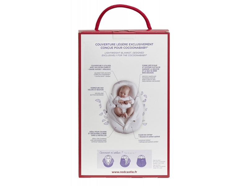 Lehká přikrývka speciálně navržená pro použití s podložkou CocoonaBaby. Tvar a upevňovací systém udržují ústa a nos dítěte volné. Zapínání na suchý zip a knoflík umožňují snadný přístup k dítěti. Přikrývka je testována na TOG hodnotu, která určuje hřejivost spacích pytlů a dek. Čím vyšší je hodnota TOG, tím je produkt teplejší. Přikrývka má hodnotu TOG 1, jedná se tedy o lehkou přikrývku vhodnou do teplejšího prostředí. Složení: 100% bavlna Možno prát v pračce. Vhodné pro děti od narození do 3 měsíců.