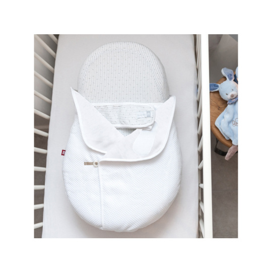 Prošívaná přikrývka speciálně navržená pro použití s podložkou CocoonaBaby. Tvar a upevňovací systém udržují ústa a nos dítěte volné. Zapínání na suchý zip a knoflík umožňují snadný přístup k dítěti. Přikrývka je testována na TOG hodnotu, která určuje hřejivost spacích pytlů a dek. Čím vyšší je hodnota TOG, tím je produkt teplejší. Přikrývka má hodnotu TOG 2,5, jedná se tedy o přikrývku pro celoroční použití. Složení: 93% bavlna, 7% polyester Možno prát v pračce. Vhodné pro děti od narození do 3 měsíců.