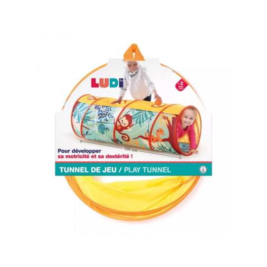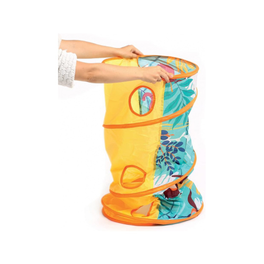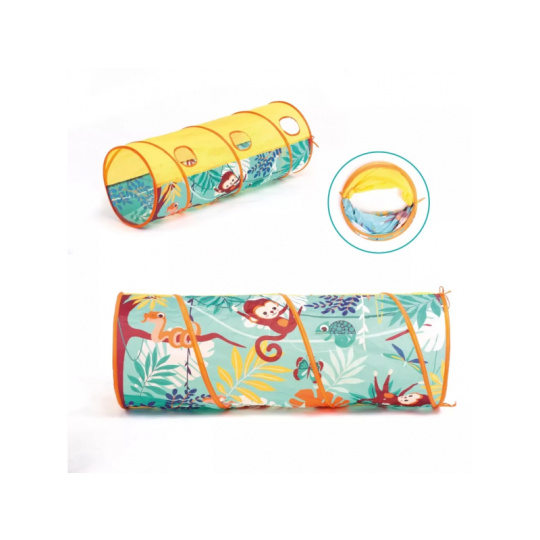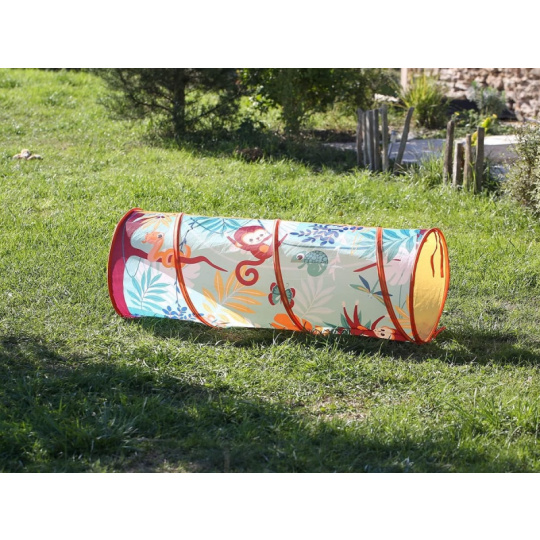 Hrací tunel s krásným potiskem zvířátek z džungle je vhodný pro hraní doma i venku. Pro větší zábavu má tunel 3 otvory, kterými se např. mohou dovnitř vhazovat míčky. Tunel se snadno skládá i rozkládá. Když jej nepoužíváte, jednoduše jej složíte do plochého tvaru do tašky, ve které je dodáván. Prolézací tunel poskytuje bezpečné prostředí pro cvičení a zkoumání, je skvělý pro rozvoj hrubé motoriky i jednotlivých smyslů vašeho batolete. Složení: 100% polyester Rozměry: 120 x 45 cm Vhodné pro děti od 2 let.