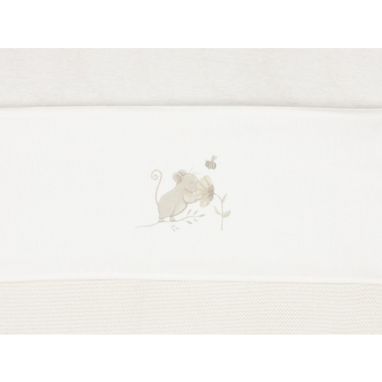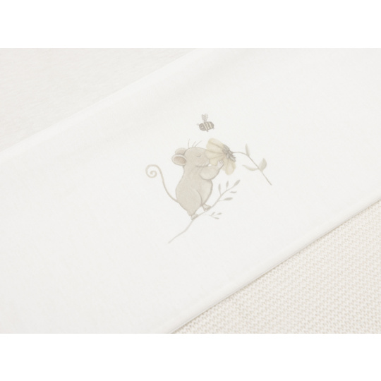 Prostěradlo z měkké, jemné 100% bavlny s motivem roztomilé myšky je ideální jako doplněk k pletené či fleecové dece, kterou přikrýváte miminko v košíku či postýlce. Chrání deku před znečištěním podobně jako klasické povlečení. Rozměry: 75 x 100 cm