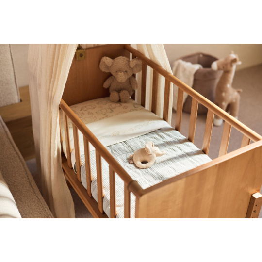 Napínací prostěradlo do kolébky, košíku nebo přídavné postýlky pro miminko je vyrobené z měkké, jemné 100% bavlny s krásným potiskem pro pohodlí vašeho dítěte. Pružný materiál umožňuje použití pro matraci až do rozměru 50 x 90 cm. Balení obsahuje 1 ks prostěradla. Materiál: 100% bavlna