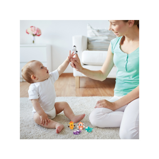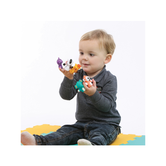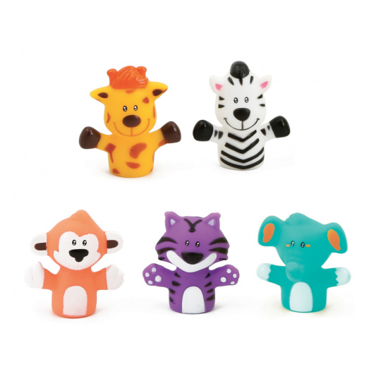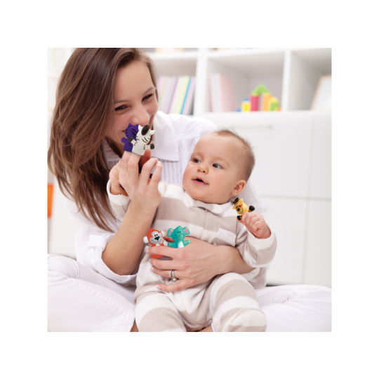 Sada originálních prstových maňásků nabízí skvělý způsob, jak si užít vyjímečné chvíle s vaším dítětem, jako je čas koupání nebo povídání před spaním. Vymýšlejte si spolu příběhy o pěti zvířecích kamarádech a rozvíjejte tak zábavným způsobem představivost a slovní zásobu dítěte. Nejdříve se naučí poznávat barvy a jména zvířat, ve starším věku už si maňásky nasadí na vlastní prsty a bude vymýšlet vlastní příběhy. Balení obsahuje 5 prstových maňásků. Rozměry maňáska: 5 x 5 x 2,5 cm. Složení: PVC bez obsahu ftalátů Vhodné pro děti od 10 měsíců.