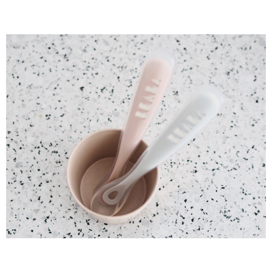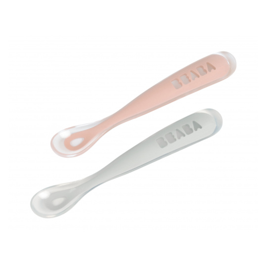 První lžička silikonová 2ks s pouzdrem Old Pink