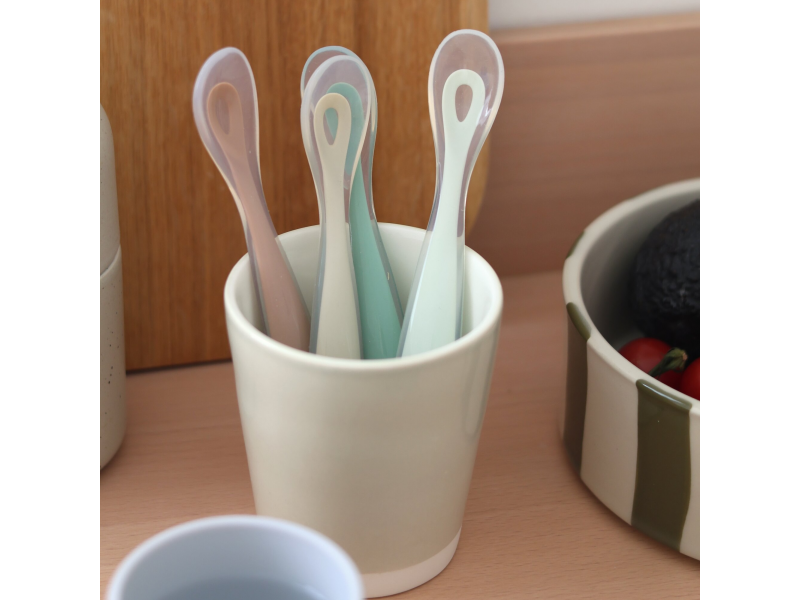 Silikonové lžičky pro nejmenší jsou šetrné k citlivým dětským dásním a navržené pro hladký přechod ze savičky na lžičku. Dlouhá rukojeť usnadňuje rodiči nabírání z misky i skleničky bez zašpinění rukou. Možno mýt v myčce. Neobsahuje BPA. Vhodné pro děti od 4 měsíců.