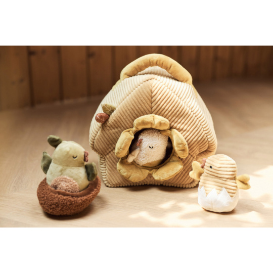 Veselá ptačí budka s třemi roztomilými ptáčky přinese vašemu dítěti nekonečné hodiny objevování a hraní. Schovávání ptáčků do budky i jejich vytahování ven pomáhá rozvíjet dětskou zvídavost, fantazii i jemnou motoriku. Budka je vybavena i držadlem pro snadné přenášení a při zmáčknutí šustí pro větší zábavu i stimulaci sluchu. Jemné barvy, příjemný materiál a kvalitní zpracování dělají z hračky i krásný doplněk dětského pokoje. Složení: 100 % polyester Rozměry: 26 × 18 × 24 cm Možno prát v ruce. Vhodné pro děti od narození.
