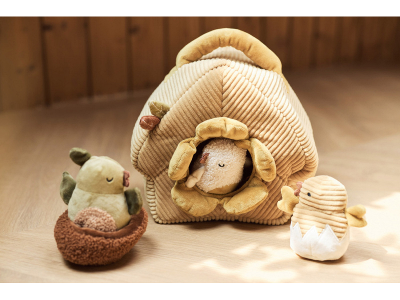 Veselá ptačí budka s třemi roztomilými ptáčky přinese vašemu dítěti nekonečné hodiny objevování a hraní. Schovávání ptáčků do budky i jejich vytahování ven pomáhá rozvíjet dětskou zvídavost, fantazii i jemnou motoriku. Budka je vybavena i držadlem pro snadné přenášení a při zmáčknutí šustí pro větší zábavu i stimulaci sluchu. Jemné barvy, příjemný materiál a kvalitní zpracování dělají z hračky i krásný doplněk dětského pokoje. Složení: 100 % polyester Rozměry: 26 × 18 × 24 cm Možno prát v ruce. Vhodné pro děti od narození.