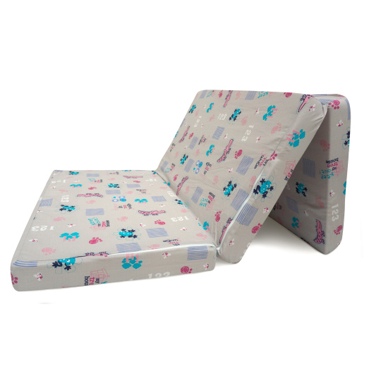 Skládací matrace je vyrobena z pevného molitanu. Má snímatelný a pratelný potah.