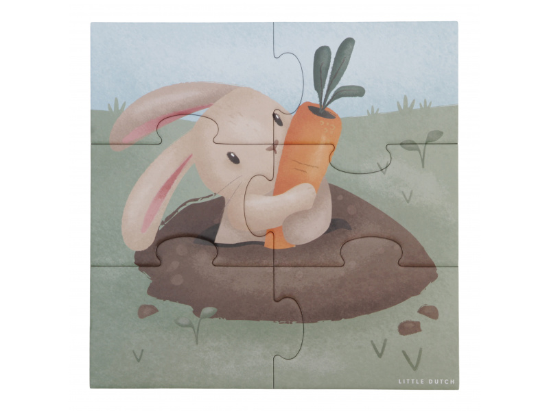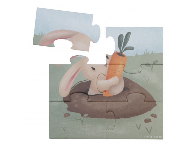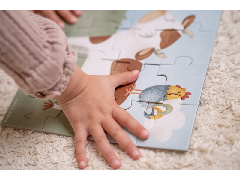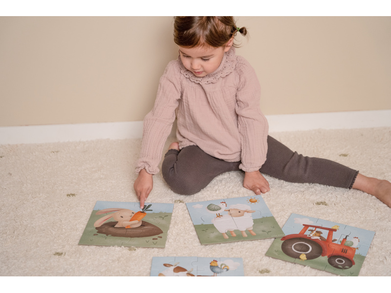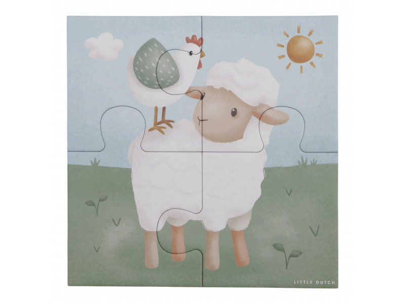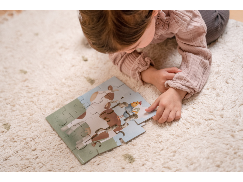 Seznamte se s životem na farmě a zkoumejte spolu s vaším dítětem tvary, barvy i zvířátka. Sada obsahuje 4 varianty puzzle skládaček pro nejmenší s krásnými ilustracemi. Jednotlivé skládačky mají od 4 do 16 dílků z pevného kartonu, které jsou dokonale tvarované pro malé dětské ručičky. Hračka je součástí designové kolekce hraček a doplňků Little Dutch Farma. Puzzle rozvíjí jemnou motoriku dítěte i dovednosti jako řešení problémů, trpělivost a rozpoznávání tvarů. Rozměry boxu: 21,5 x 21,5 x 5,2 cm Vhodné pro děti od 2 let.