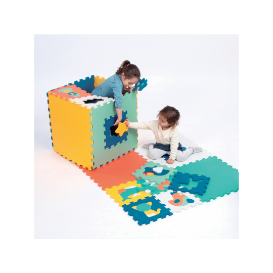 Sada extra velkých různobarevných pěnových puzzlí Ludi s vyjímatelnými zvířátky slouží ke hraní i jako hrací podložka a dekorace do dětského pokoje. Různé textury, barvy a motivy podporují rozvoj smyslů, motorických dovedností a představivosti dítěte. Ve starším věku dítěte se s jejich pomocí může učit poznávat zvířata i geometrické tvary. Materiál je ohebný, odolný, tlumí nárazy a tepelně izoluje. Rozměry celkové: 180 x 180 x 1,2 cm Rozměry jednoho dílu: 60 x 60 x 1,2 cm Složení: 100% EVA Vhodné pro děti od 10 měsíců.