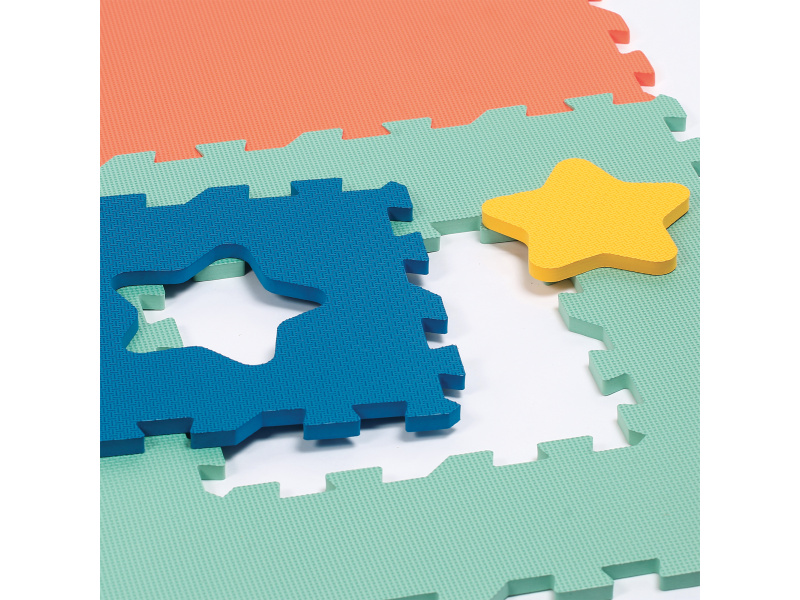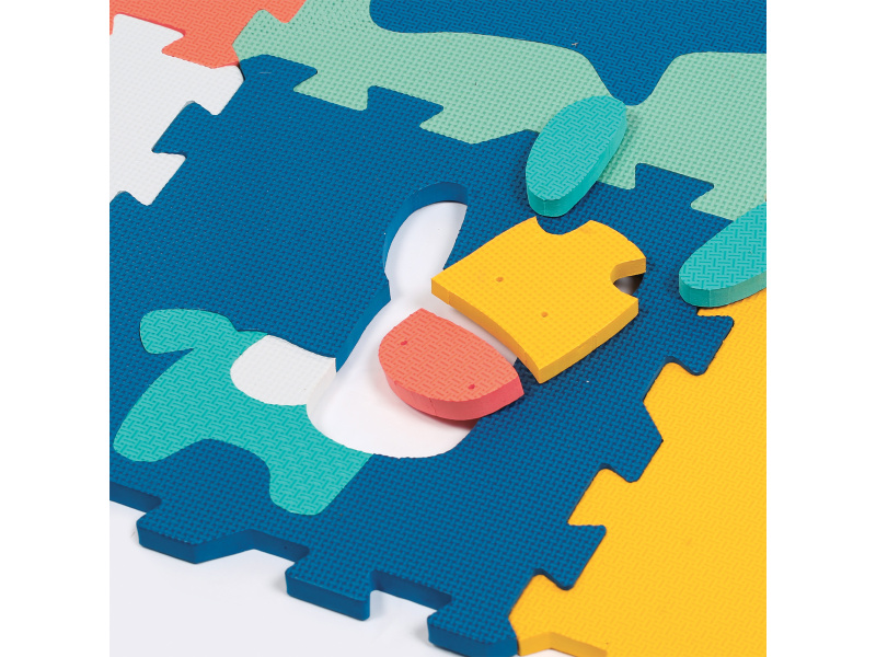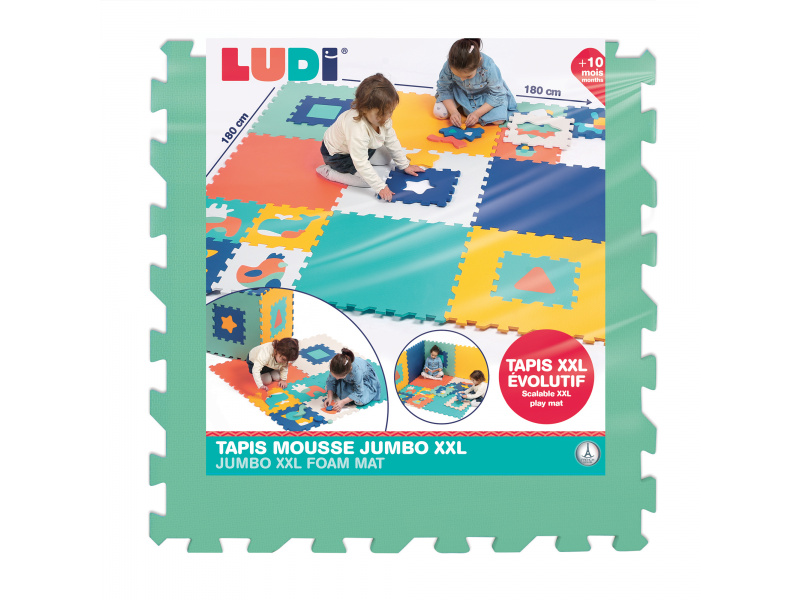 Sada extra velkých různobarevných pěnových puzzlí Ludi s vyjímatelnými zvířátky slouží ke hraní i jako hrací podložka a dekorace do dětského pokoje. Různé textury, barvy a motivy podporují rozvoj smyslů, motorických dovedností a představivosti dítěte. Ve starším věku dítěte se s jejich pomocí může učit poznávat zvířata i geometrické tvary. Materiál je ohebný, odolný, tlumí nárazy a tepelně izoluje. Rozměry celkové: 180 x 180 x 1,2 cm Rozměry jednoho dílu: 60 x 60 x 1,2 cm Složení: 100% EVA Vhodné pro děti od 10 měsíců.