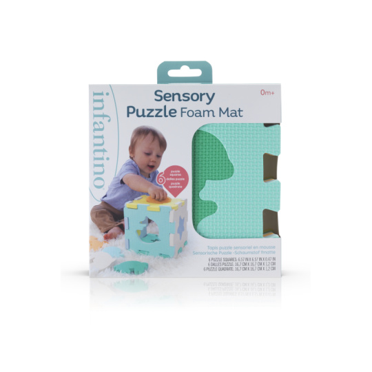 Extra silné pěnové puzzle vytváří bezpečné a měkké místo pro hraní dětí. Každý ze šesti dílů má jinou barvu a obsahuje vložený tvar nebo zvířátko. Z jednotlivých dílů můžete sestavit hrací podložku nebo z nich vytvořit kostku. Jednotlivé díly se snadno spojují a lze je jednoduše stohovat a ukládat. Hraní s puzzlemi pomáhá rozvíjet motorické dovednosti i jednotlivé smysly dítěte. Rozměry podložky: 50 x 33 cm Rozměry kostky: 16,7 x 16,7 x 16,7 cm Vhodné pro děti od narození.