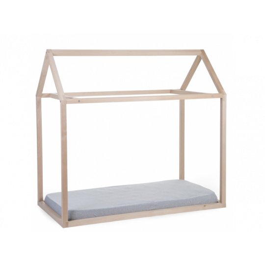 NA OBJEDNÁVKU S DODANÍM 4-6 TÝDNŮ Dřevěná konstrukce z bukového dřeva vám umožní vytvořit vašemu dítěti postýlku v podobě útulného domku.  Dřevěný rošt, matrace a textilní potah v designu domku se prodávají samostatně. Vhodné pro matraci velikosti 70x140 cm. Rozměry: 148 x 78 x 124 cm