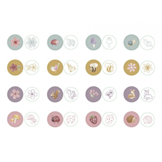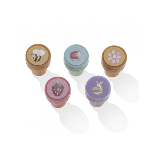 Sada samobarvicích razítek s roztomilými motivy ze života na zahradě včetně srnky, berušky, veverky apod. Razítka jsou samobarvicí, takže jsou ihned připravená k použití! Razítka představují snadný a zábavný způsob, jak stimulovat dětskou kreativitu a zároveň rozvíjet jejich jemné motorické dovednosti. Razítka jsou součástí designové kolekce hraček a doplňků Little Dutch fairy Garden inspirované životem na zahradě. Sada obsahuje 16 razítek. Rozměry balení: 15,5 x 13 x 3,8 cm Vhodné pro děti od 3 let.