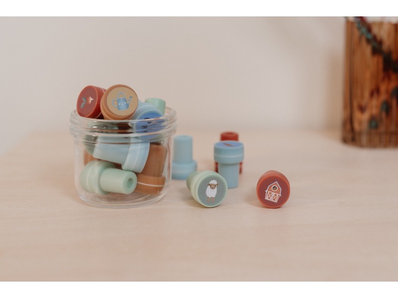 Sada samobarvicích razítek s roztomilými motivy ze života na farmě včetně ovečky, kuřátka, traktoru apod. Razítka jsou samobarvicí, takže jsou ihned připravená k použití! Razítka představují snadný a zábavný způsob, jak stimulovat dětskou kreativitu a zároveň rozvíjet jejich jemné motorické dovednosti. Razítka jsou součástí designové kolekce hraček a doplňků Little Dutch Farma. Sada obsahuje 16 razítek. Rozměry balení: 15,5 x 13 x 3,8 cm Vhodné pro děti od 3 let.