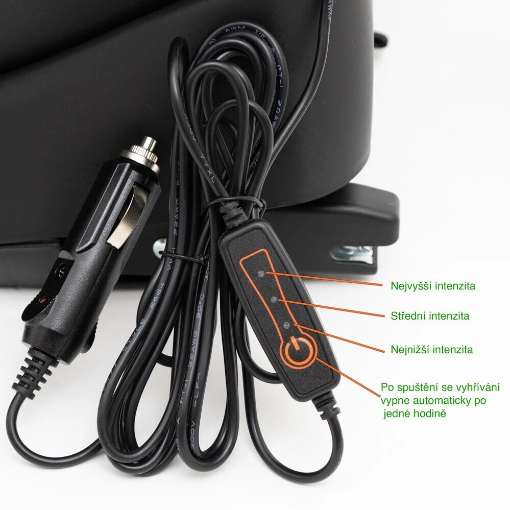Podložku je možné odpojit od zbylého 3 metry dlouhé kabelu, aby se usnadnilo například přesouvání sedačky do jiného auta.