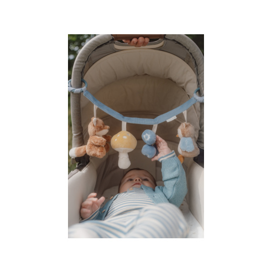 Čtyři zavěšené plyšové hračky v podobě lišky, sovy, houbičky a borůvek zabaví vaše miminko na cestách v autosedačce či kočárku. Jednotlivé hračky při zkoumání dětskými ručičkami chrastí a šustí. Hračky stimulují koordinaci ruka / oko dítěte. Hračka je součástí designové kolekce hraček Little Dutch Forest Friends inspirované životem v lese. Rozměry: 35 x 14 x 8 cm Vhodné pro děti od narození.