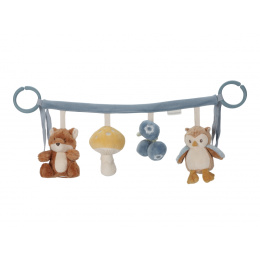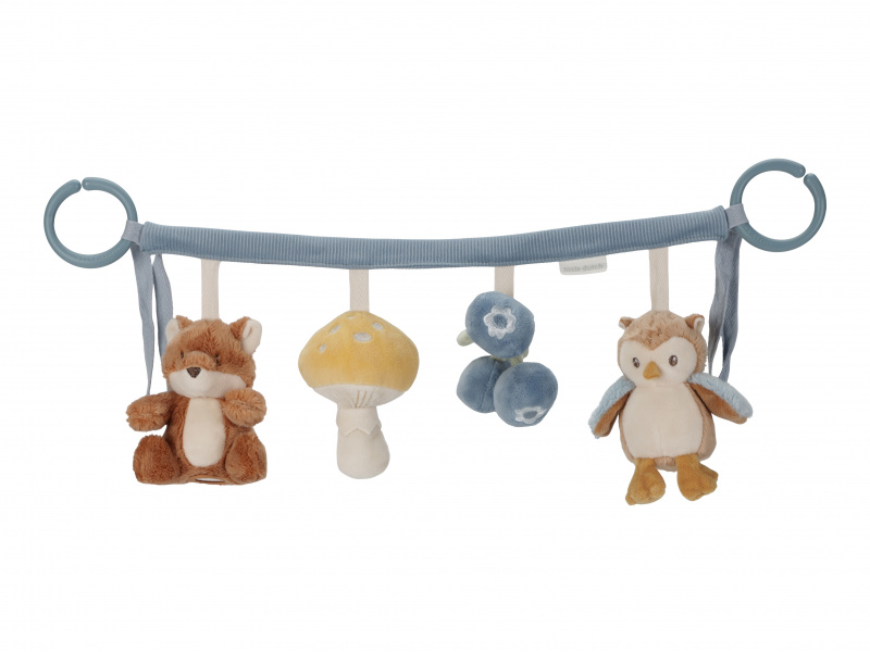 Čtyři zavěšené plyšové hračky v podobě lišky, sovy, houbičky a borůvek zabaví vaše miminko na cestách v autosedačce či kočárku. Jednotlivé hračky při zkoumání dětskými ručičkami chrastí a šustí. Hračky stimulují koordinaci ruka / oko dítěte. Hračka je součástí designové kolekce hraček Little Dutch Forest Friends inspirované životem v lese. Rozměry: 35 x 14 x 8 cm Vhodné pro děti od narození.
