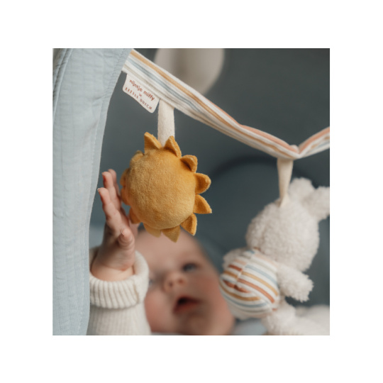 Hračky na řetězu lákají k pozorování a zabaví vaše dítě při cestování autem či procházkách s kočárkem. Zavěšené hračky chrastí, pískají a šustí. Snadno se připevní na autosedačku nebo kočárek. Hračka podporuje rozvoj koordinace oko-ruka. Hračka je součástí kolekce hraček Little Dutch Miffy, jejichž ústřední postavou je roztomilá králičí holčička Miffy, známá z knížek pro děti holandského spisovatele Dicka Bruny. Složení: 100% polyester Vhodné pro děti od narození.