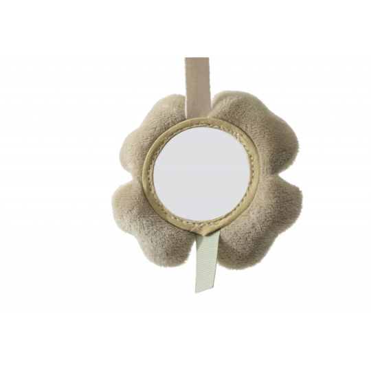 Řetěz na kočárek či autosedačku se zavěšenými hračkami v podobě pejska, kočičky a čtyřlístku s bezpečným zrcátkem zabaví vaše miminko v kočárku či autosedačce. Měkké hračky vyrobené z jemného plyše cinkají a nabízí různé textury pro zkoumání. Hračky stimulují koordinaci ruka / oko dítěte. Řetěz s hračkami snadno připevníte ke kočárku i autosedačce díky vázacím šňůrkám. Složení: polyester, bavlna Možno prát v ruce. Vhodné pro děti od narození.