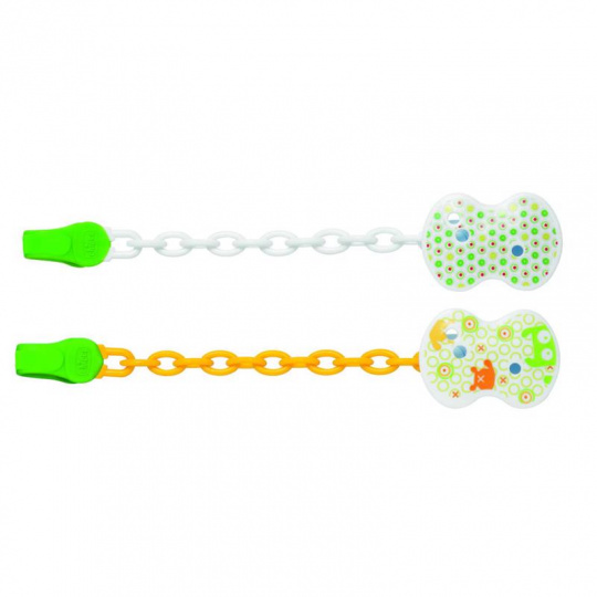 Řetízek na šidítko s jednoduchým připevněním na oblečení s možností horké i studené sterilizace.