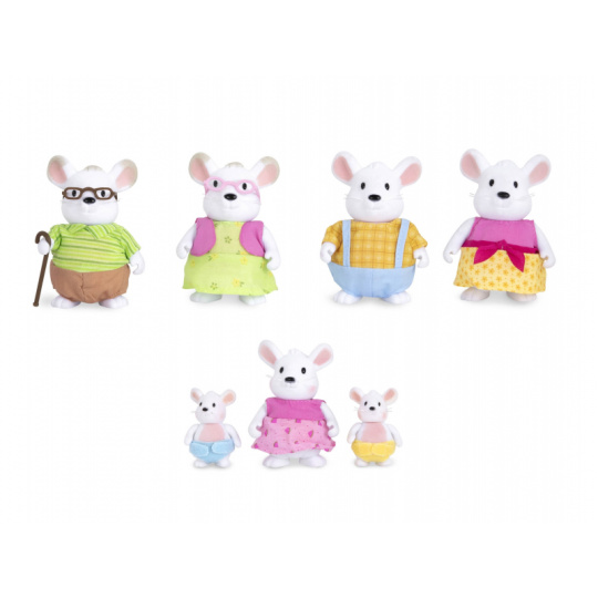 Rodinu myší Nibblekin tvoří prarodiče Ricky a Betsy Rose, rodiče Penny a Perry a děti Cheddar, Bo a Dot. Všichni žijí v městečku Honeysuckle Hollow spolu s ostatními postavičkami Li'l Woodzeez. Postavičky zvířátek Li'l Woodzeez jsou vyrobené z měkkého příjemného materiálu a mají pohyblivé ruce, nohy i hlavy pro zábavnou předstíranou hru. Každá postavička má na sobě krásné barevné oblečení. Sada obsahuje 7 postaviček myší. Další postavičky zvířátek, domečky, obchody, dopravní prostředky apod. se prodávají samostatně. Všechny postavičky a doplňky Li'l Woodzeez jsou navzájem kompatabilní a umožní vám vytvořit originální městečko pro nekonečnou hru rozvíjející fantazii a kreativitu vašeho dítěte. Vhodné pro děti od 3 let.