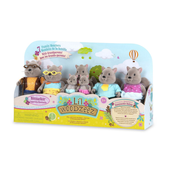 Rodinu veverek Bustleberry tvoří prarodiče Nora a Earl, rodiče Sarah a Carl a děti Tulip, Timmie a Tammie. Všichni žijí v městečku Honeysuckle Hollow spolu s ostatními postavičkami Li'l Woodzeez. Postavičky zvířátek Li'l Woodzeez jsou vyrobené z měkkého příjemného materiálu a mají pohyblivé ruce, nohy i hlavy pro zábavnou předstíranou hru. Každá postavička má na sobě krásné barevné oblečení. Sada obsahuje 7 postaviček veverek. Další postavičky zvířátek, domečky, obchody, dopravní prostředky apod. se prodávají samostatně. Všechny postavičky a doplňky Li'l Woodzeez jsou navzájem kompatabilní a umožní vám vytvořit originální městečko pro nekonečnou hru rozvíjející fantazii a kreativitu vašeho dítěte. Vhodné pro děti od 3 let.