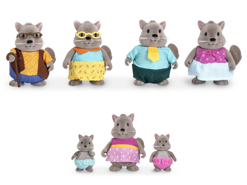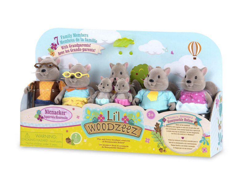 Rodinu veverek Bustleberry tvoří prarodiče Nora a Earl, rodiče Sarah a Carl a děti Tulip, Timmie a Tammie. Všichni žijí v městečku Honeysuckle Hollow spolu s ostatními postavičkami Li'l Woodzeez. Postavičky zvířátek Li'l Woodzeez jsou vyrobené z měkkého příjemného materiálu a mají pohyblivé ruce, nohy i hlavy pro zábavnou předstíranou hru. Každá postavička má na sobě krásné barevné oblečení. Sada obsahuje 7 postaviček veverek. Další postavičky zvířátek, domečky, obchody, dopravní prostředky apod. se prodávají samostatně. Všechny postavičky a doplňky Li'l Woodzeez jsou navzájem kompatabilní a umožní vám vytvořit originální městečko pro nekonečnou hru rozvíjející fantazii a kreativitu vašeho dítěte. Vhodné pro děti od 3 let.
