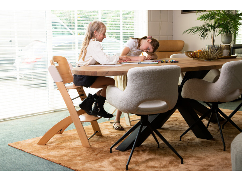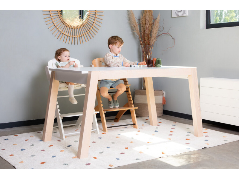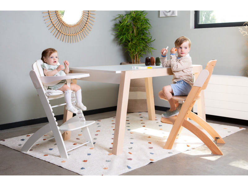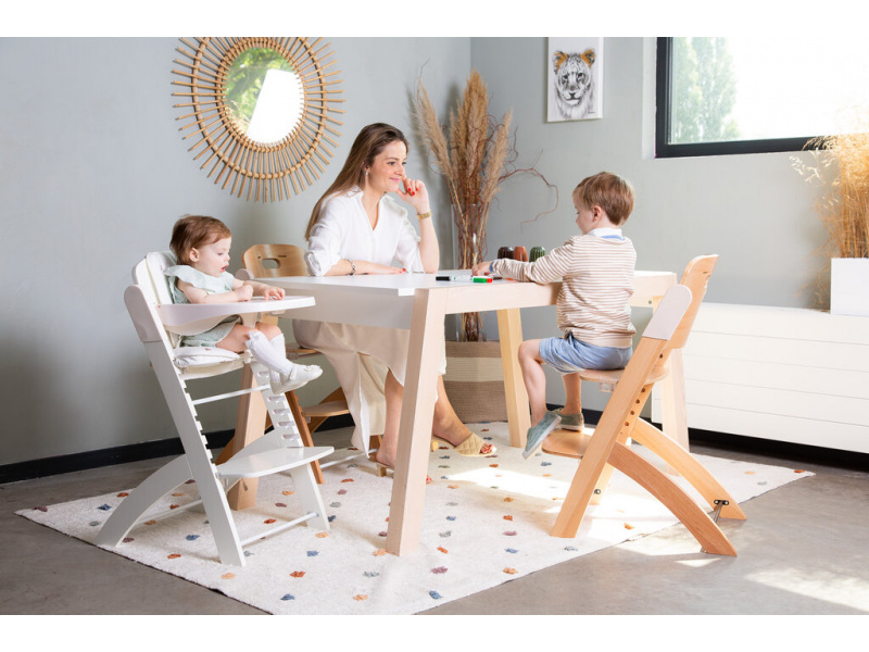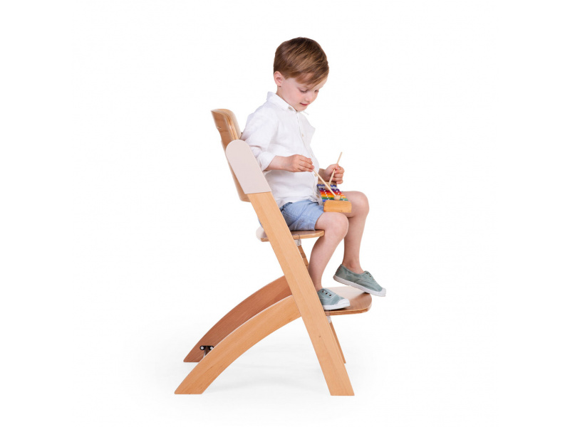 Rostoucí židlička z bukového dřeva Childhome Evosit umožňuje snadné nastavení výšky sedáku a opěrky nohou bez šroubování. Díky svému nadčasovému designu se židlička stane i krásným doplňkem vašeho interiéru. Odnímatelný jídelní pult z ABS plastu se snadno udržuje otřením a je možné jej mýt myčce. Bezpečné usazení dítěte zajišťuje 5-bodový bezpečnostní pás a madlo kolem pasu. Pro starší děti je možné madlo i pásy odmontovat a židličku používat jako standardní židli ke stolu. Díky nosnosti do 85 kg je možné židličku používat až do dospělosti dítěte. Pro větší pohodlí dítěte je možné k židličce dokoupit sedací polštářky. Rozměry jídelního pultu: Š 36 cm - H 17 cm Výška pultu od země: 72,5 cm Rozměry sedáku: Š 43 cm - H 23 cm Možné výšky sedáku: 56 cm - 52,5 cm - 49 cm Rozměry opěrky nohou: Š 43cm - H 26cm Možné výšky opěrky nohou: 41, 37, 33.5, 29.5 a 26 cm Půdorys židličky: 45 x 60 cm Rozměry: 45 x 53 x 86 cm Nosnost: 85 kg Vhodné pro děti od 6 měsíců.
