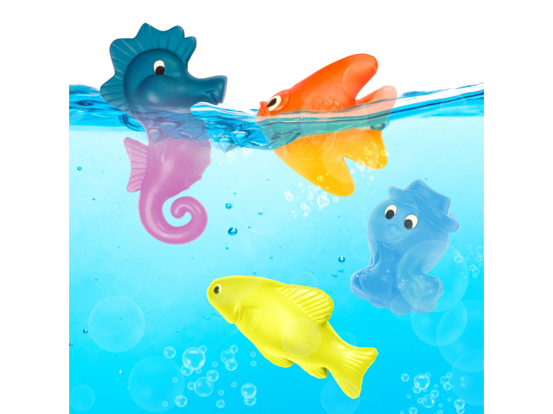 Sadu pro malé rybáře tvoří dva magnetické rybářské pruty se 4 rybičkami, 2 chobotnicemi a mořskými koníky, které po ponoření do vody mění barvu. Děti mohou trénovat rybaření doma ve vaně nebo na zahradě v bazénku. Vhodné pro děti od 3 let.